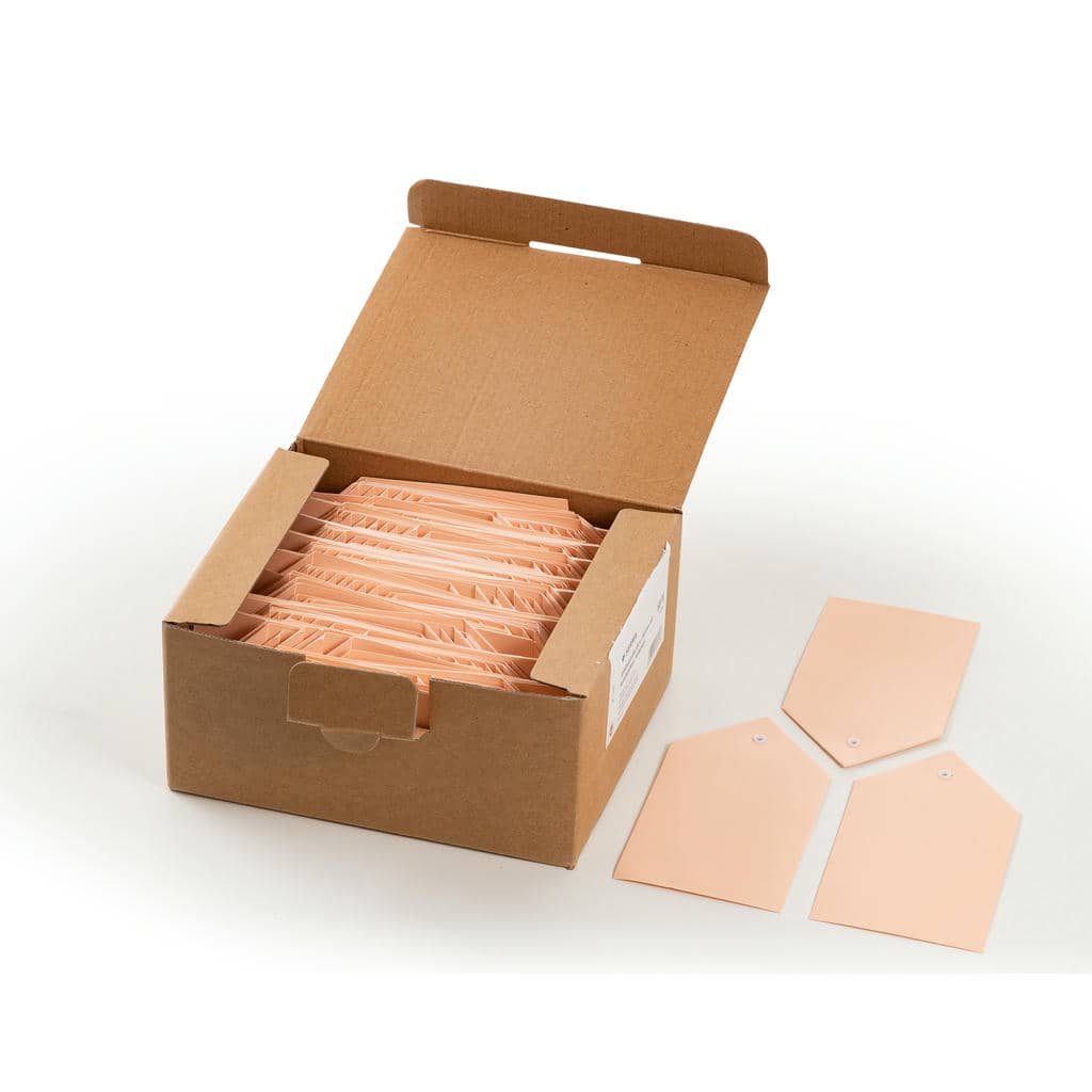 Anhängezettel mit Kunststofföse, mit Faltecken – 80 x 150 mm