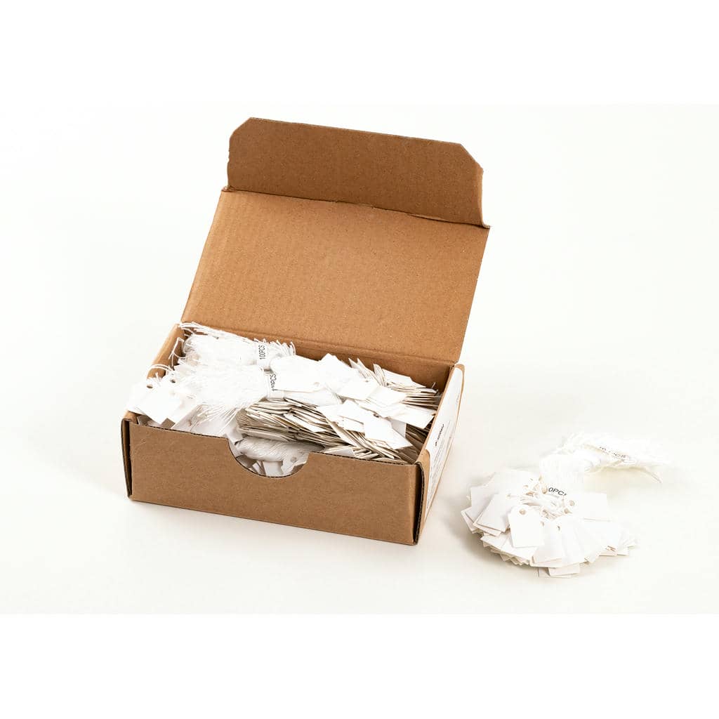 Hängeetiketten mit Faden weiß, 1000 St. – 15 x 24 mm