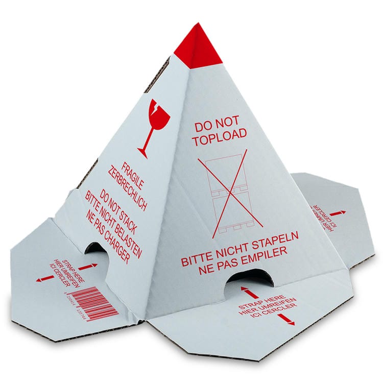 »» Selbstklebender Palettenaufsatz als optische und mechanische Warnung vor dem Stapeln von Paletten